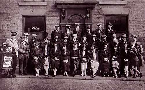 and my main memories of the house are... The smell of soot and the black soil between the flagstones in the backyard... The walk with a torch at night to the communal toilets along the street... Auntie Joan's pile of 'Picturegoer' magazines... and... The wind-up gramophone, with the enormous horn... and Frankie Lane singing 'Ghost Riders in the Sky'... or Spike Jone's 'Hawaiian War Chant'... Left: Burley Road about 1930 |
