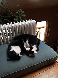 We seem to have avoided any punch-ups with neighboring moggies so far at least... and the only minor problem is the wind from the south-east which blows the cat-flap open..!